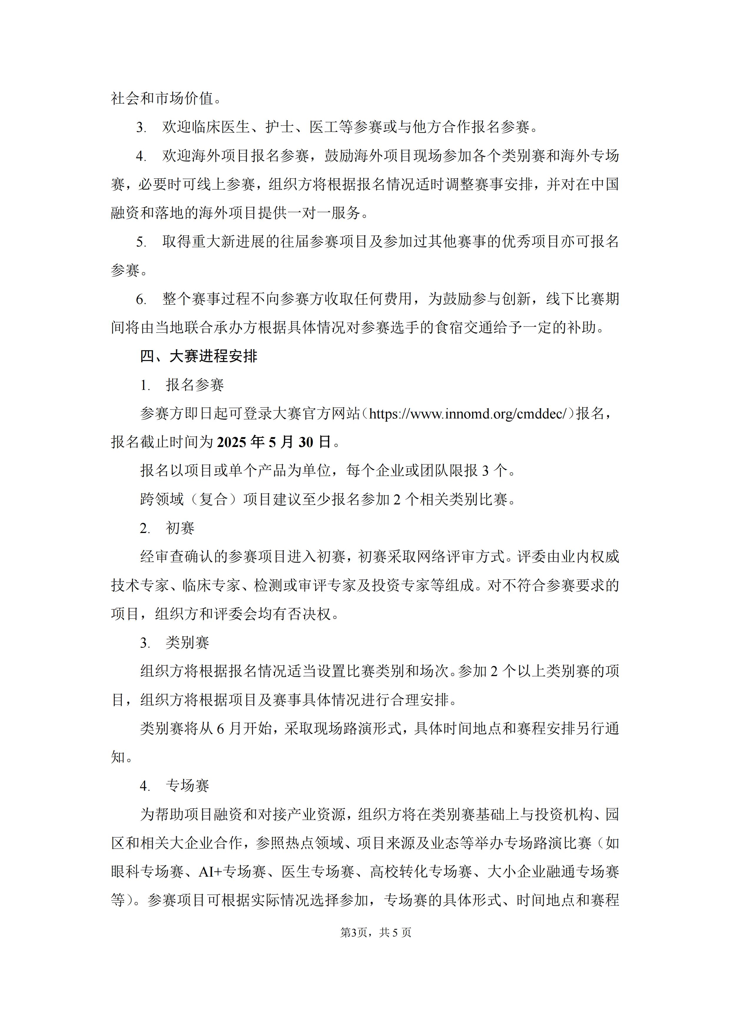 参赛方即日起可登录大赛官方网站(医疗器械创新网网://lvmanager.com/cmddec/)报名,报名截止时间为2025年5月30日。